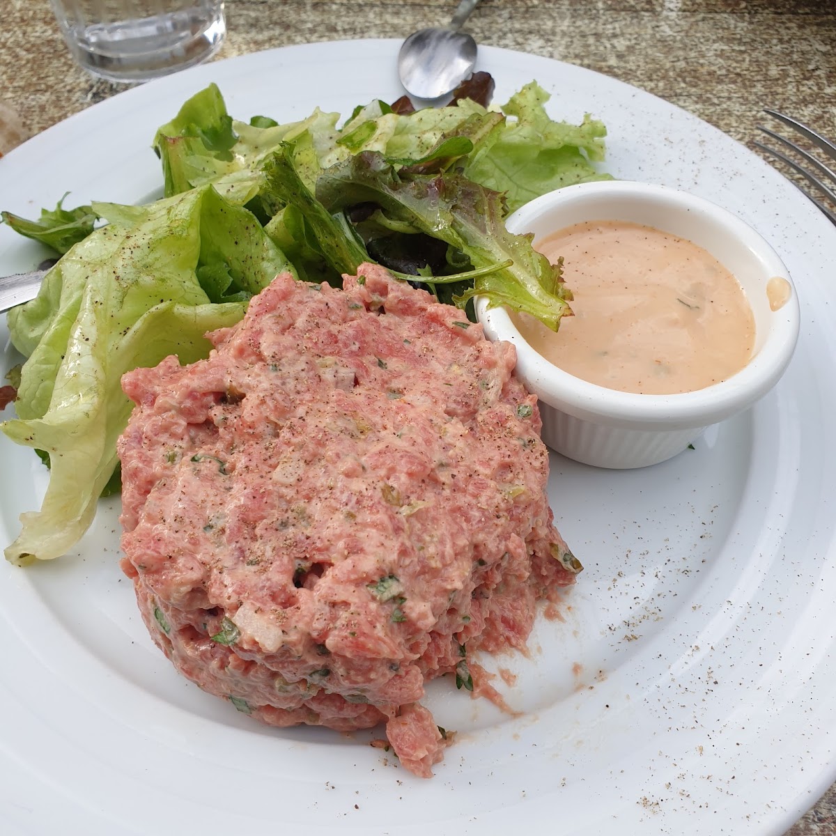 Best restaurant we've eaten at during our visit to France so far. We had the ribeye which was quite large and the pork shoulder which was a smaller serving size but tasted wonderful. The Paris Brest dessert was surprisingly good as well. The interior of the restaurant was very picturesque, and if you eat outside, you get to have a view of the Chateau de Amboise across the street. The servers knew English and were extremely welcoming and attentive.